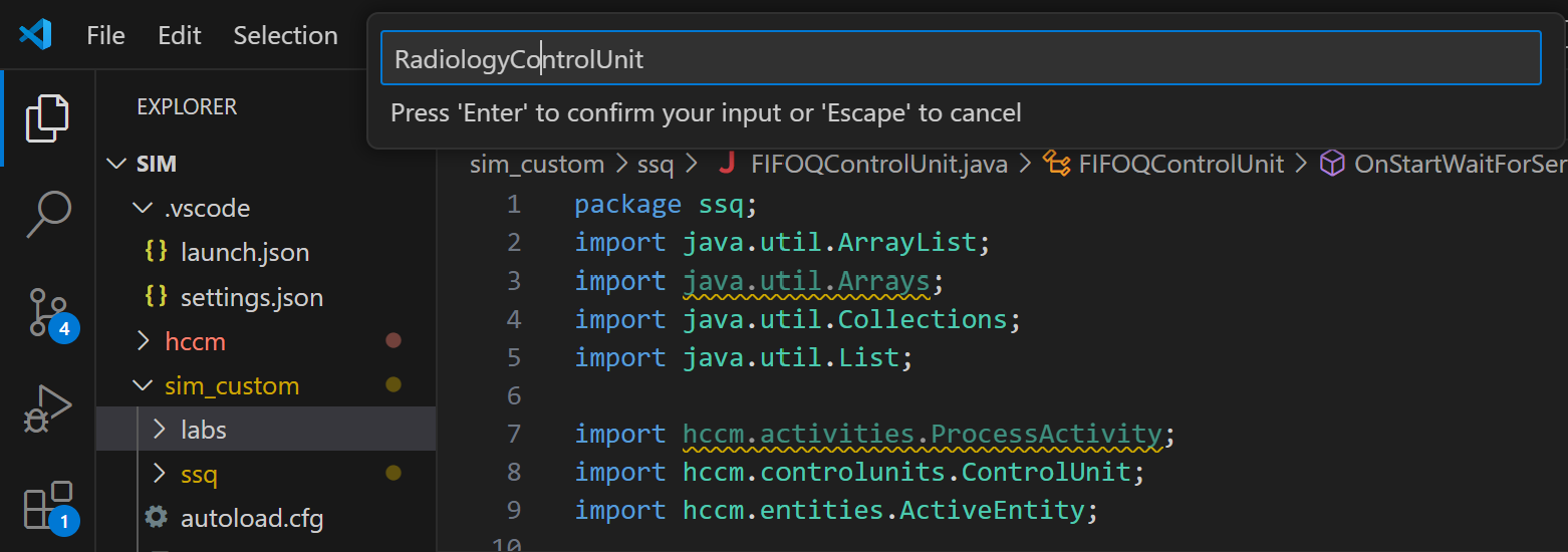 A new folder called labs should have been created within the sim_custom folder. Right click on the newly created labs folder and select New Java File \(\rightarrow\) Class. Name the Class RadiologyControlUnit and press Enter.